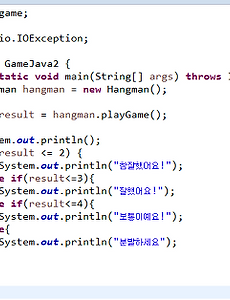 728x90 반응형 Java16 java Exception(PrintStream, ArrayIndexOutOfBoundsException ) PrintStream 해당경로에 저장할 수 있도록 한다. --------------------------------------------------------start package study8; import java.io.FileNotFoundException; import java.io.PrintStream; public class ErrorMessagePrintEx { public static void main(String[] args) { String[] test={"JAVA","PHP","JSP"}; String pnt=""; PrintStream ps = null; for(int i=0;i 2015. 8. 4. 자바 인터페이스(interface) 자바 인터페이스 다른 언어에서는 다중상속을 많이 쓴다. 하지만 자바에서는 다중상속을 쓰지 않는데 여러 개의 부모클래스를 쓰다면 프로그래머가 생각지도 못한 문제가 발생하거나 완성된 프로그램을 보면 어떤 부모클래스의 멤버변수인자 이해하기도 어렵다. 또 같은 이름의 클래스가 여러 부모를 가지고 있는경우 오버라이딩 되는 메소드를 알 기도 힘들고 재사용율도 현저히 낮아지는 결과가 나올 수 있다. 그래서 사용하는 것 이 인터페이스 이다. 다음 예제를 통해 알아보자 HEIGHT라는 인터페이스를 만든 후 메소드를 만든다. InterfaceTest클래스는 인터페이스를 구현한 후 오버라이딩하여 원하는 것을 반환하 해주는 것이다. 반환한 값을 출력하면 다음과 같은 결과를 볼 수 있다. 2014. 10. 30. 자바 행맨게임 만들기_2 이전 자바 행맨게임 만들기_1에서 행맨게임을 만들기 위한 준비작업을 마쳤다면 실 제로 행맨게임 코드를 짜보도록 하자 앞에서 설명과 같이 컴퓨터는 출제가 되며 정답을 맞추는 것은 user바로 이 프로그램 실행하는 사람이다. 일단 DataBase연계가 없으므로 간단한 단어 몇가지를 골려 랜덤함수를 통해 선택하 도록 만들었다. 크게 행맨이 실제로 돌아가는 클래스와 Main클래스를 따로 두어 Main클래스에서 실 행하도록 만들었다. 행맨Main은 보는 봐와 같이 HangMan클래스를 생성하며 playGame()이라는 메소드 를 실행하고 그 값을 result 변수에 넣는다. 후 result변수의 값에 따라 잘/못의 판단을 하게 된다. 전역변수 hiddenString과 outputString ,inputString.. 2014. 10. 27. 자바 숫자야구게임 만들기 오늘의 주제는 숫자야구게임 만들기입니다. 숫자야구란 10미만의 숫자를 두 사람이 정해 서로의 수를 맞추는 게임으로 자리와 숫자가 맞다면 strike 자리는 틀리고 숫자만 맞는다면 ball이며 먼저 상대방의 숫자를 맞추는 사람이 이기는 게임이다. 중고등학교 시절 친구들이랑 쉬는 시간에 많이 했던 게임을 java로 만들어보록 하자 이 코딩을 컴퓨터의 숫자가 정해져 있고 user는 컴퓨터가 random으로 뽑은 숫자를 알아맞추 는 형식으로 진행된다. 처음 start와 exit를 입력받아 숫자야구를 진행할 지에 대하여 물어본다. 숫자야구를 시작한후 컴퓨터가 숫자를 저장할 배열 ballArray와 유저의 숫자를 저장할 배열 userArray를 선언하다.(3개의 숫자를 받아야 하므로 배열의 크기를 3으로 함) in.. 2014. 10. 22. 이전 1 2 3 4 다음 728x90 반응형