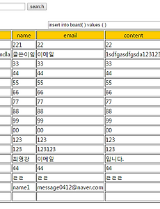php2 PHP [phpMyadmin 처럼 만들어 보기] table 검색/insert/update/delete 저번에 올렸던 db의 테이블을 검색하여 컬럼명과 데이터를 뽑아 왔던 것의 수정본으로써 검색된 table에 insert/update/delete 를 바로 할 수 있도록 만들어 놨다. dbsearch.php table searchquery 2015. 10. 23. php mysql 테이블을 검색/컬럼 및 데이터 출력 function fn_s(){ location.href="dbsearch.php?search="+document.frm.search.value; } table search -------------------------------------------------------------------------------------------------------------------------------search라는 버튼을 클릭시 자기 자신에게 search값을 보내 get형식으로 받고 그것을 sql문에 넣어줌으로써 해당 table을 검색할 수 있다. 위에 $column_name을 array()형으로 만든 뒤 쿼리 후 배열형태로 저장된 0번째 값인 컬럼name을 $column_ name에 저장하여 화면에 뿌려주.. 2015. 10. 22. 이전 1 다음